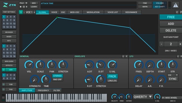 ZynAddSubFX é um sintetizador analógico virtual avançado capaz de modelar os sons mais incríveis que você possa imaginar.